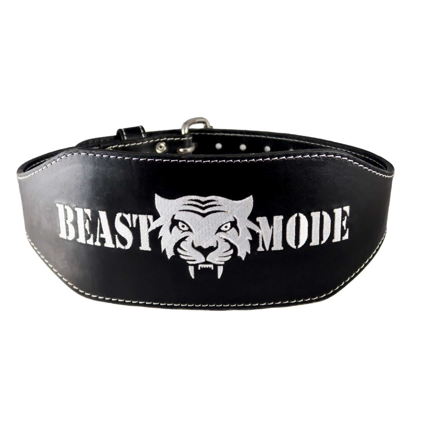 De buitenzijde is uitgevoerd in zwart leer met Beastmode in wit geborduurd. De binnenzijde bestaat uit zwart, glad leer voor een comfortabele pasvorm vanaf het eerste gebruik. Afgewerkte randen en dubbele stiksels zorgen voor duurzaamheid en een lange levensduur.